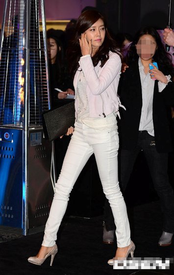 나타나자마자 쭉~~~뻗은 화이트 스키니 패션으로 이목 집중…