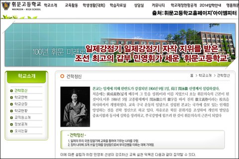 대한민국 학교 설립자들의 대부분이 일제강점기 친일로 부와 권력을 누렸던 인물들입니다. 일제강점기 자작의 지위를 받고 조선 최고의 갑부였던 민영휘가 설립한 휘문고등학교는 친일파 민영휘를 자랑스럽게 설립자라고 내세우며 역사를 왜곡하고 있습니다.