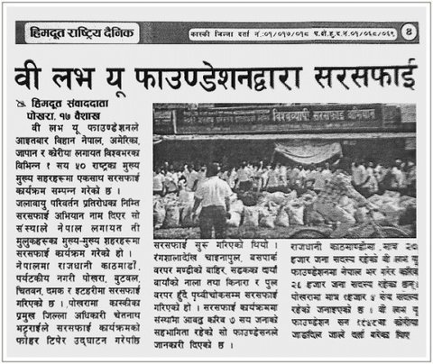 기후변화 대응을 위한 클린월드운동이라는 슬로건으로 국제위러브유운동본부에서 네팔을 포함하여 각국 중심도시에서 정화운동을 펼친 것이다.