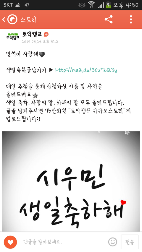 꺄아아ㅏ아 나도 오늘 생일인데 민소쿠ㅜㅜ 댜량햐
