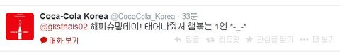 코카콜라 트위터에서도 생축 메세지 ㅋㅋ