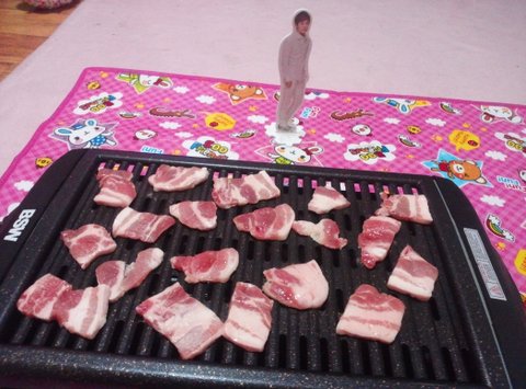 맛잇게 익어가는 고기를 보고잇는걸까욬ㅋㅋㅋ