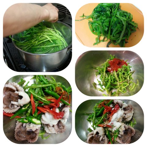 재료: 주꾸미, 미나리, 양파, 대파, 다진 마늘