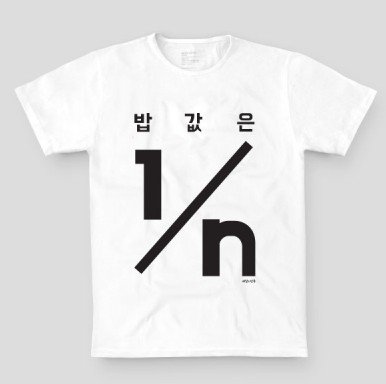 밥값은 1/n 티셔츠라니 신박한데 선뜻 입기 쉽지는 않을 듯.. ㅠㅠ 갖고싶네요 그래도 ㅋㅋ