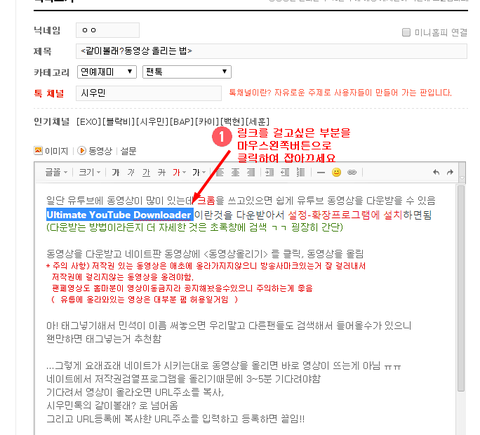 설명이 난잡하지만 동영상올리기는 설명이 필요없을정도로 쉽기때문에 내가 준 정보는 Ultimate YouTube Downloader 정도일거라생각?ㅋㅋㅋㅋㅋ솔직히 이래저래 타싸이트보다 동영상 올리는게 귀찮긴한것같음 그래도 무료로 이용할수있는 공간이고 이왕 생긴 동영상란이니 우리 확실하게 이용해서 활성화시키면좋겠음 ㅎ