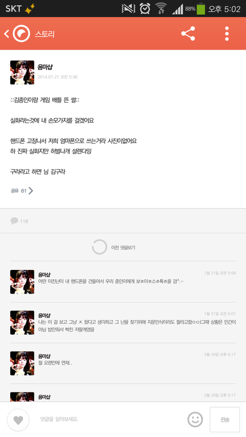 헐헐헐야진심빨리들어와봐진짜ㄷ카스년
