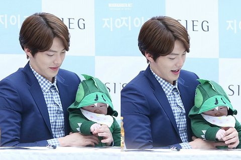 공룡옷 야무지게 입고 엄마 품에 안겨왔는데 김우빈 표정 봨ㅋㅋㅋㅋㅋㅋㅋ