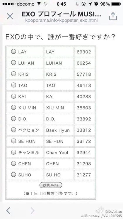 엑소 일본 투표 가져왔다