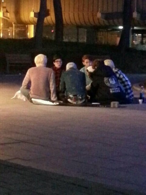 길거리에서 바닥에앉아 치킨뜯는 아이돌