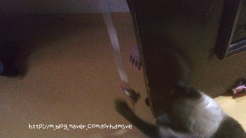 신발끈에 꼬리잡힌 쥐인형이랑 놀다가 이렇게됬음