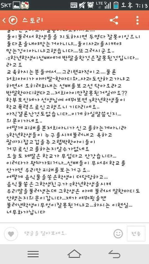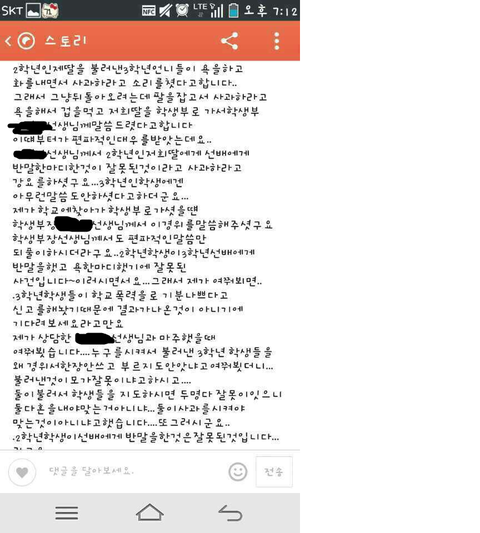 하지만 선생님은 제 친구의 말을 들으려고 하지도않았고 그냥 3학년언니들 취업도 나가야하고대학도가야하니까 무슨 사건이 생기면안되는지뭔가 감싸주는 분위기였습니다