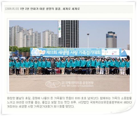 2009년 5월 3일에 있었던 제11회 새생명 사랑 가족걷기대회 소식을 전해드릴께요^^