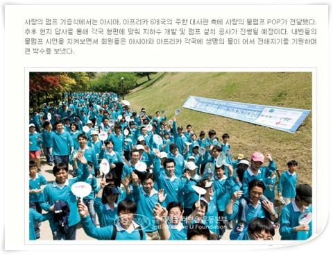 가족이 함께 마음을 모아 물부족 국가 어린이들을 위한 물펌프기증과 희망을 전하였던 발걸음