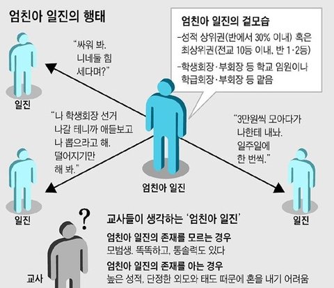 요샌 이런 지능형 일진들이 더 무서운 것 같음..일단 공부잘하면 나중에 한 자리 해먹을 것이며, 외모가 좋으면 어디선 호감일테고, 성격까지 겉으로 좋으면...나중에 딱 소시오패스가 되기 싶다...소시오패스가 지능적으로 똑똑한 편이고 겉으로는 호감형에 직무에 있어 유능한 편이라고 하던데..ㅎㄷㄷ하고만...