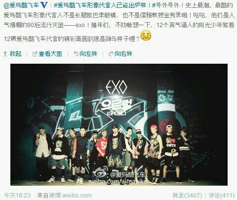 우와 엑소 중국 자동차회사 자전거 모델됨