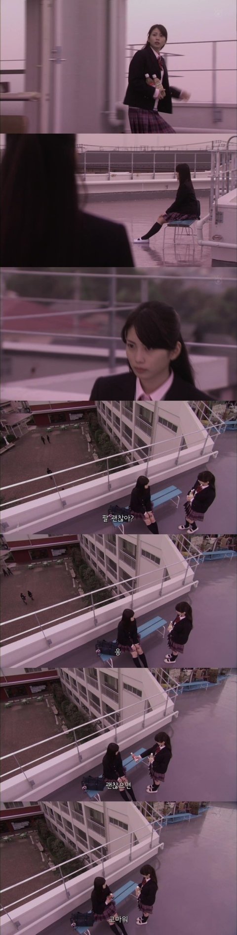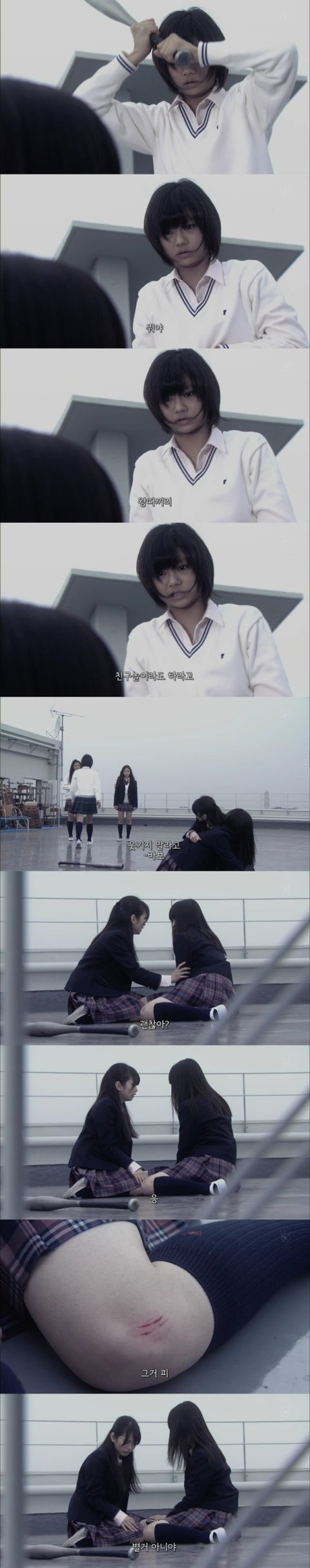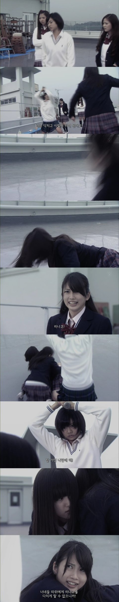 여주가 히나코 곁으로 뛰어가서 차라리 나를 때리라면서