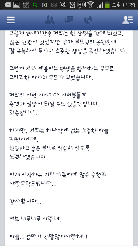 어쨌거나 이렇게 아기도 낳았는데 잘살라고해야지 아기보니까 막욕할수는없을꺼같음...