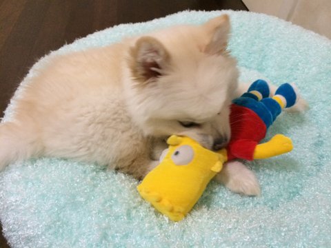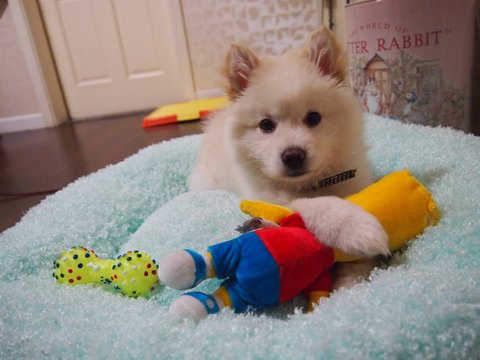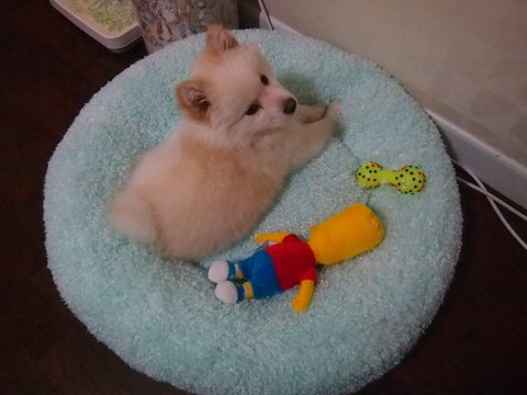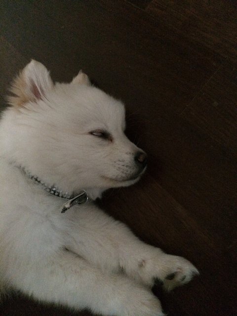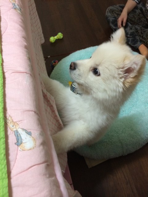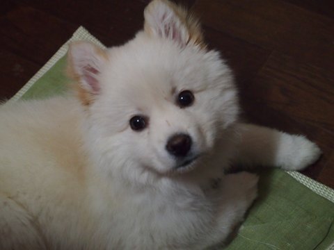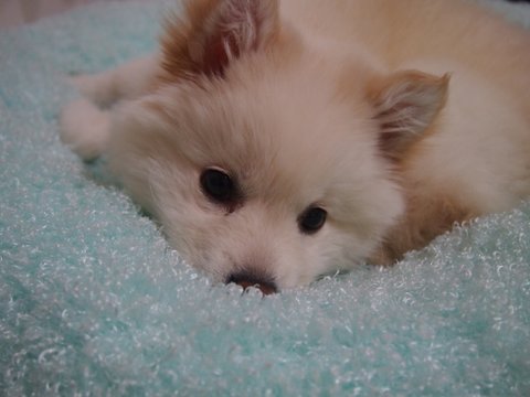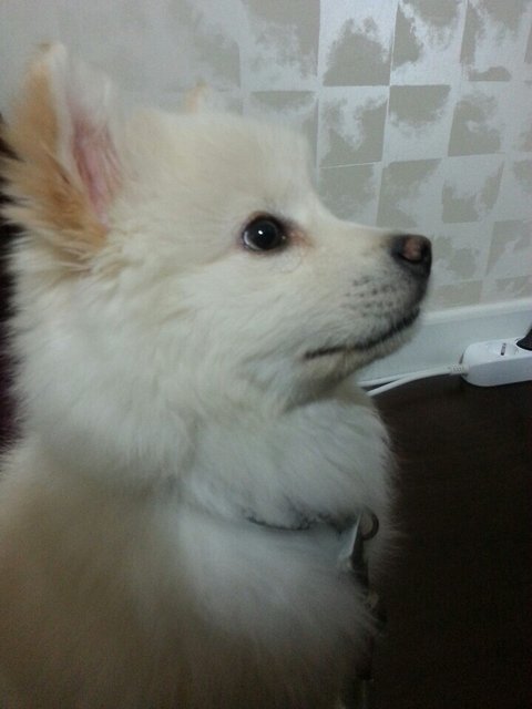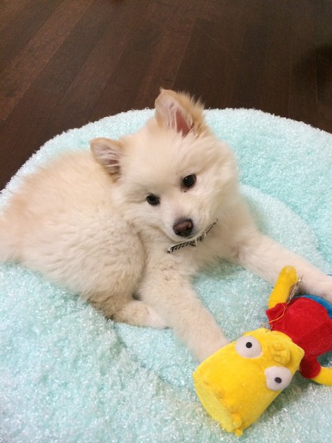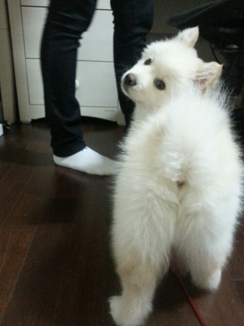 스피츠는 원래 흰색인데.. 퐁이 털색이 누래졌어요...