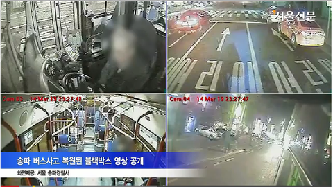 서울 송파경찰서는 29일 국립과학수사연구원이 복원한 사고 버스의 블랙박스 영상을 공개했다. 공개된 영상은 운전석, 버스 내·외부 등 모두 4분할 영상으로 2분여 분량이다.