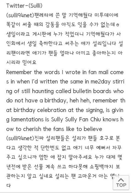아래는 설리 팬페이지 마스터분의 글입니다~^^