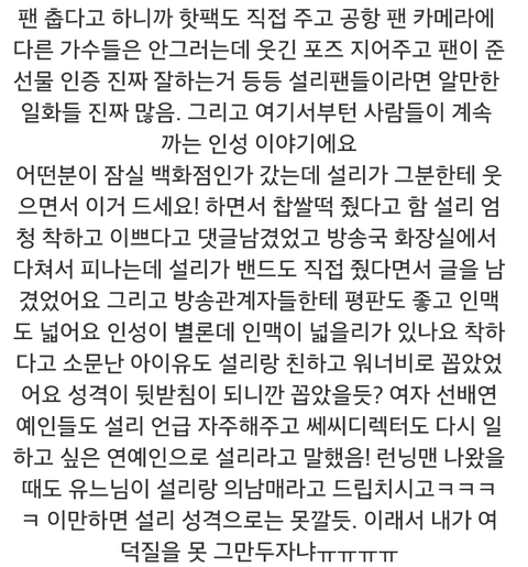 심지어 어떤분은 설리 팬싸갔다왔는데 정말 싸가 지 없었다는 둥 루머를 생성해서 욕하시고ㅠ