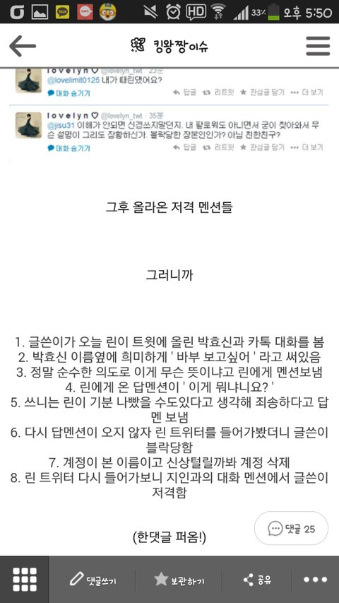 지금 트위터 갔다와보니 일진놀이한거 다 지우고ㅋㅋㅋㅋㅋㅋㅋㅋㅋㅋㅋㅋㅋ 피해자 실명거론함ㅋㅋㅋㅋㅋㅋㅋㅋㅋㅋㅋㅋㅋㅋㅋㅋㅋㅋㅋㅋㅋㅋㅋ 미친거아닌가 진짜... 타루도 지한테 공인인데 이래도 괜찮냐고 우려하는 사람한테 겁나 비꼬네ㅋㅋㅋ 진짜 유유상종이라는 말 괜히 나온 게 아닌가보다~ 나 환희팬인데 진심 다른 친구 다 상관없는데 이세진이랑 친한거는 겁나 짜증났었음ㅋㅋㅋㅋ 동류일까봐ㅡㅡ 근데 워낙 남자들한테는 잘하니깐ㅇㅇ 그 실체를 알고 친구로 지냈겠나 싶어서 걍 눙물흘리며 보고만있었는데 참ㅋㅋㅋ 아 진심싫어 끝까지 미안하다 한마디를 안하네 자존심은 그런데 세우는 게 아니란다 굽힐 곳에는 굽힐 줄 알아야지 어휴 린 클라스 대단하당!!