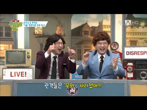 포미닛은 그때 지윤과 현아만 잡아줘서 일단 넘기고 투하트랑 엠씨는 빵터짐