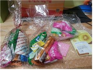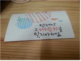 그리고 건대에서 간식 나눔 했던 과자 포자안에 이렇게 편지도 하나하나 다 들어있더라구~