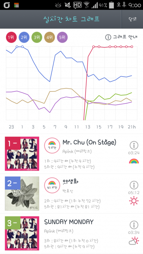 실시간 9시 차트