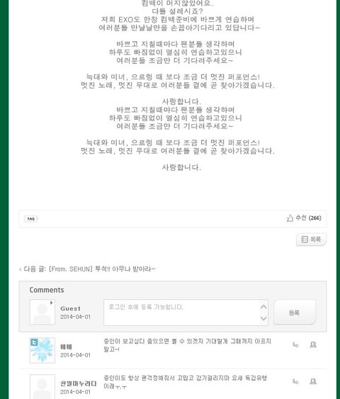 멋진 노래, 멋진 무대로 여러분들 곁에 곧 찾아가겠습니다.