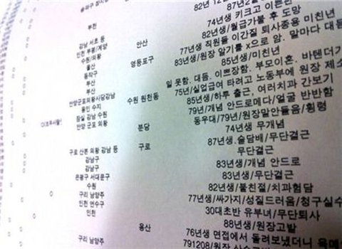 간호원들 블랙리스트 같은데? 과거행실이 저랬으니 뽑지말라고 적어놓은듯