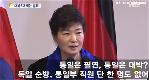박근혜 대통령은 독일 방문 중, 드레스덴 공대에서 명예박사 학위를 받고 연설을 했습니다. 당시 TV에서는 박근혜 대통령의 '통일 연설'을 대대적으로 생중계했습니다.