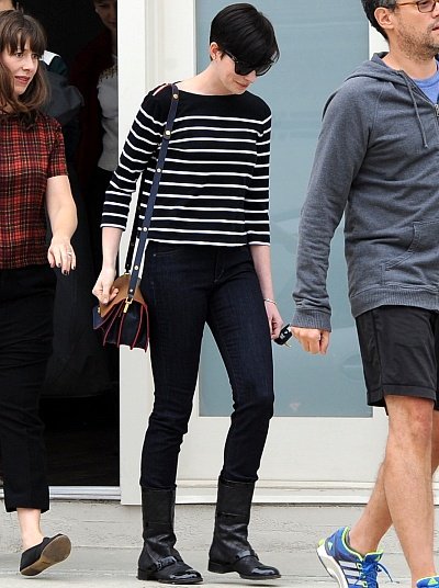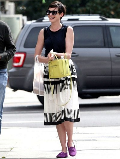 심플한 바지 패션을 즐겨 입는 앤 해서웨이~