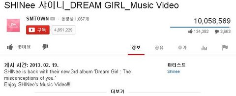 샤이니 드림걸 유투브 조횟수 1000만 돌파