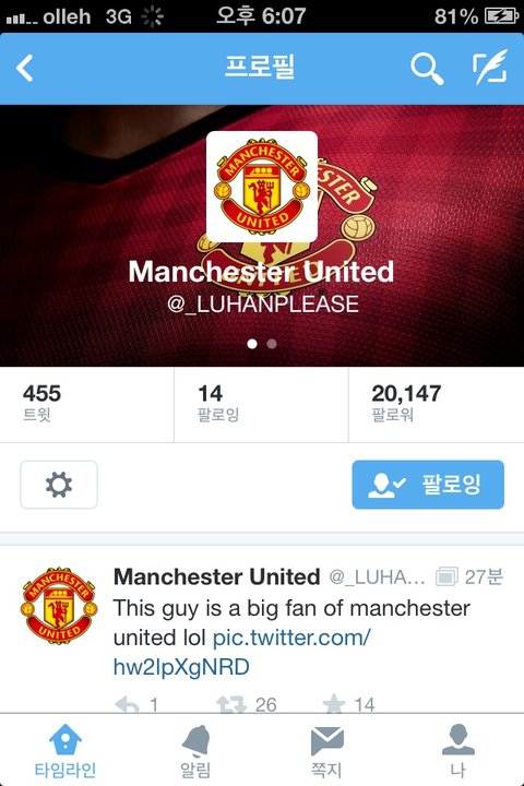 맨유의 광팬 루한 ㅋㅋㅋㅋㅋㅋ