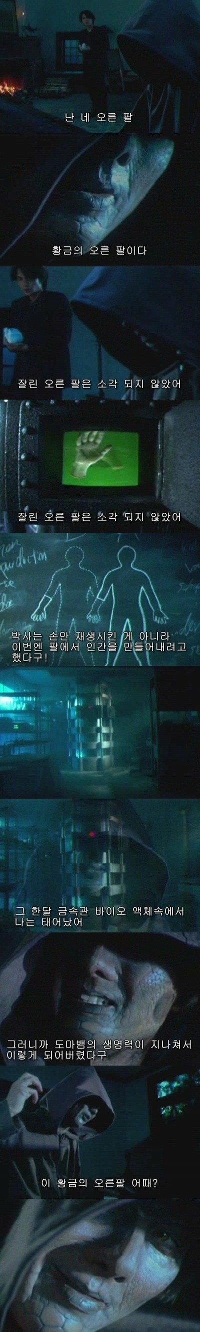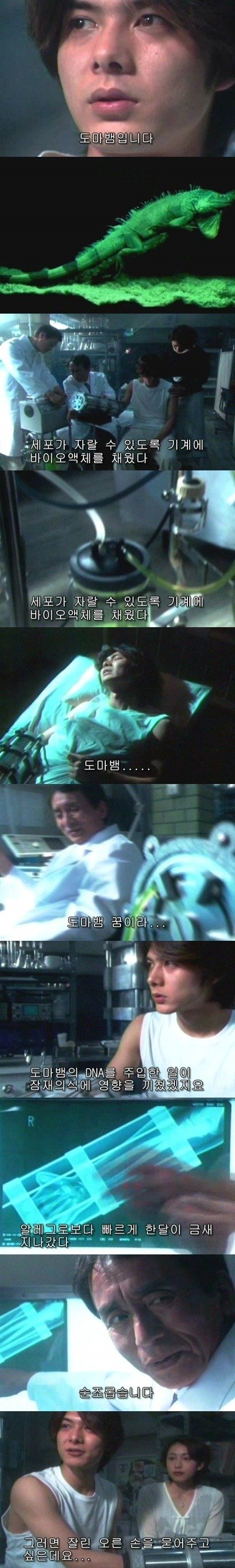 그것은 도마뱀의 DNA를 남주의 팔에 주입하여