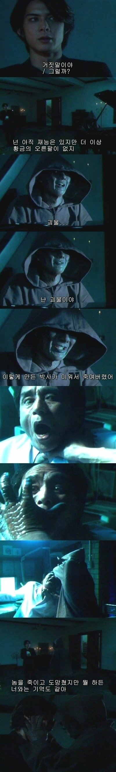 박사를 찾아가 내팔을 돌려달라며 목을 졸라 죽인다