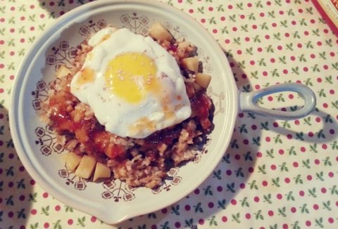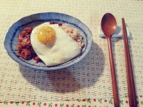 또 한가지팁, 계란후라이를 반숙으로 해서 올리면 ,,,,,, 데코용으로 짱입니다.....