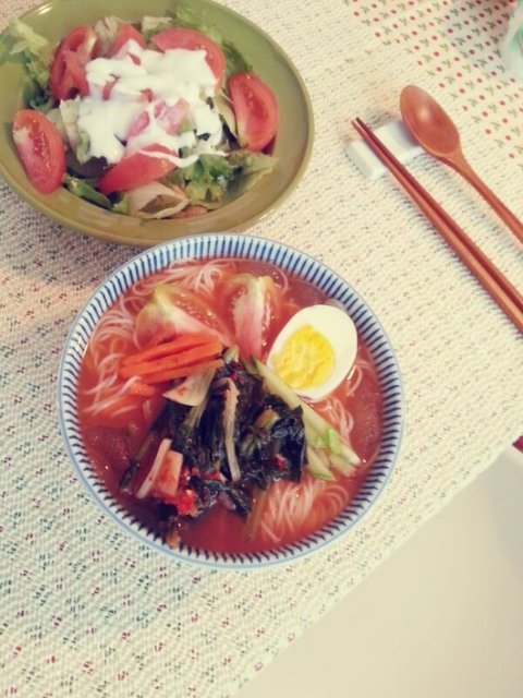열무 국수 - 열무김치국물 반 + 시중에 파는육수반 + 소면 삶아서 넣기만 하면 쉽게 만들수 있어요 히힛![]()