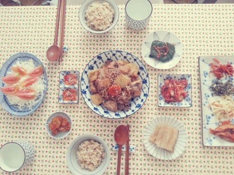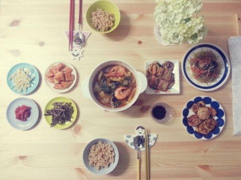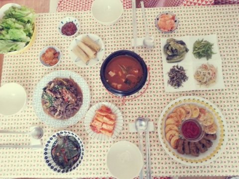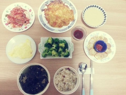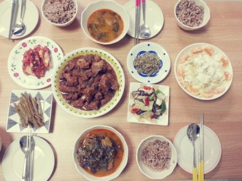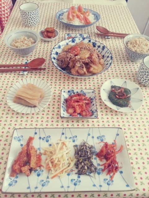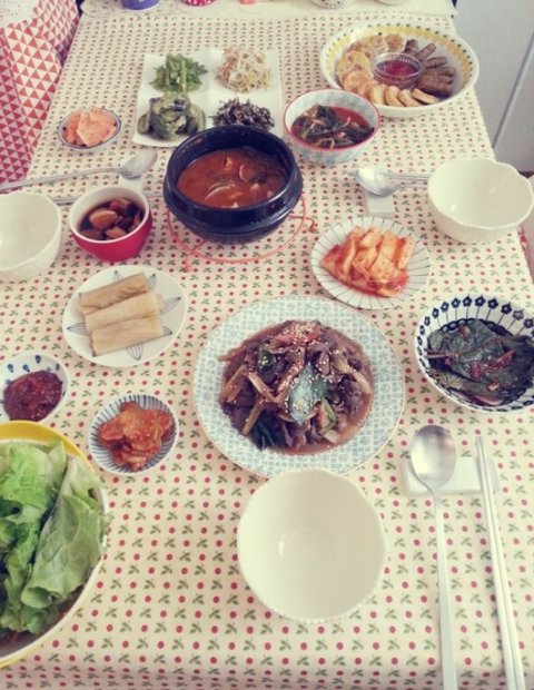 명절끝나고 엄마가 남친이랑 나눠 먹으라고 음식을 많이 싸주셔서 남친 불러다 차려준 밥상