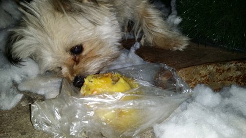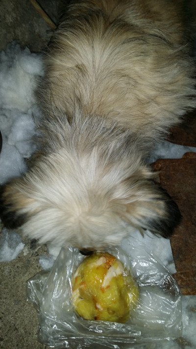 멍이 주려고 가져온 고구마와 닭고기