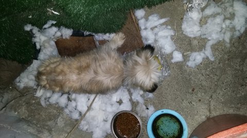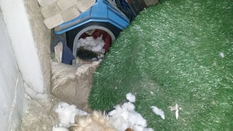 멍이 지내는곳에 하얀눈이 내렸습니다.