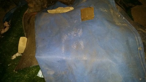 아마도 겨우내 자기집안에 놓여져있던 방석을 장난감 삼아 가지고 놀았던 모양입니다.