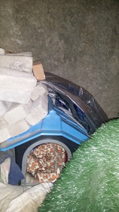 저번에도 언급했듯이 요녀석 멍이가 지내는 집 바로 왼쪽에 벽돌을 쌓아 인조잔디를 깔아둔것이있습니다.