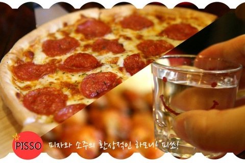 피자와 소주를 함께 먹는 다는 뜻의 PISSO입니다.
