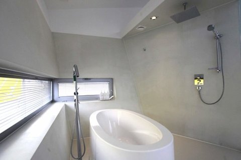하늘색으로 물든 모아이의 수영장은 150m 암반수를 끌어올려 연수,
