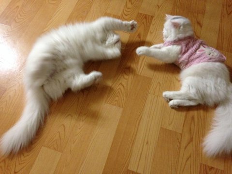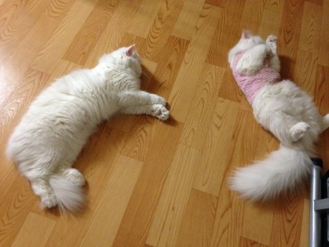 평온한 미양이와 불편해보이는 양이ㅋㅋㅋ