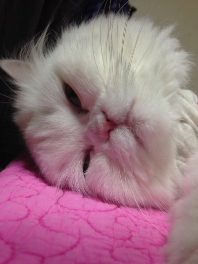 발 하나 뙇 올리고 자는 중. 기분좋은지 코가 분홍코에영