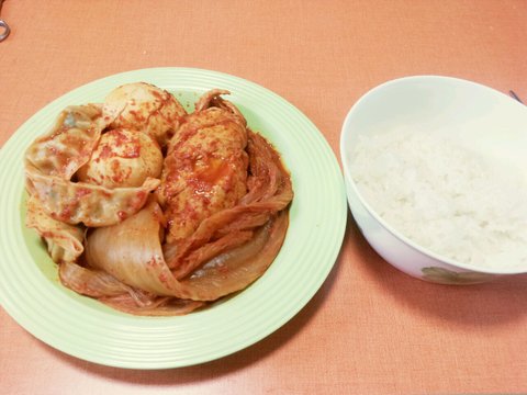 김치찜이 너무 먹고싶은데 돼지고기는없고 사러가기는 귀찮고.....그래서 집에있는 닭가슴살이랑 뜬금없이 만두넣어서 만든 김치찜!