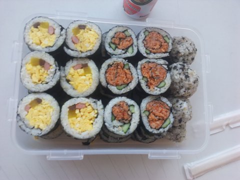 경주에서 유명한 계란김밥과 그렇게 보이진않지만 장미꽃 모양을 테마로한 장미꽃 김밥 ㅋㅋㅋ